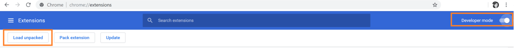 Navigate to chrome://extensions/ and ensure that ‘Developer mode’ is enabled prior to loading the extension else you won’t see the ‘Load unpacked’ button at the top of the browser.